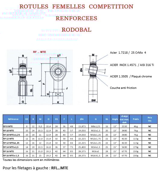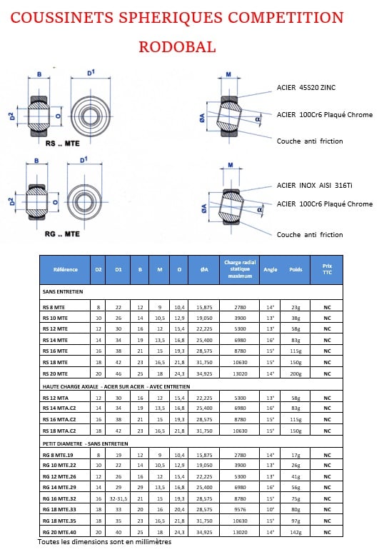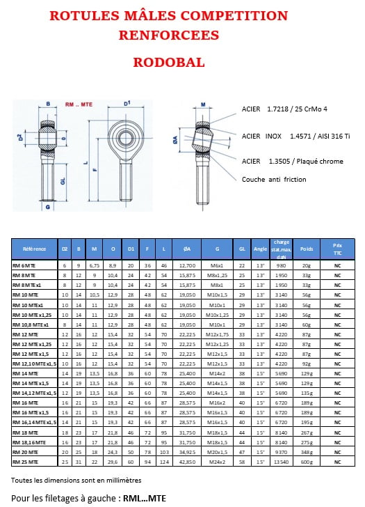 Veuillez trouver la liste des rotules compétition renforcées et accessoires ci-dessous.